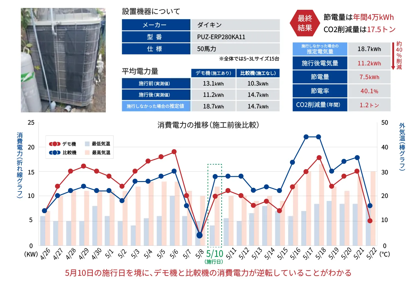 現場でのデータが、節電塗装の確かな実力を物語っています。